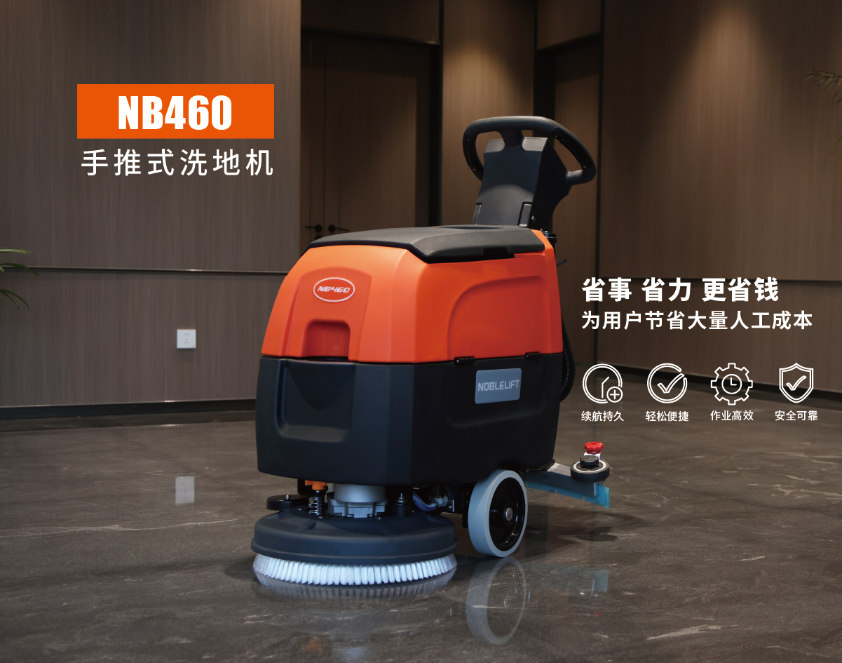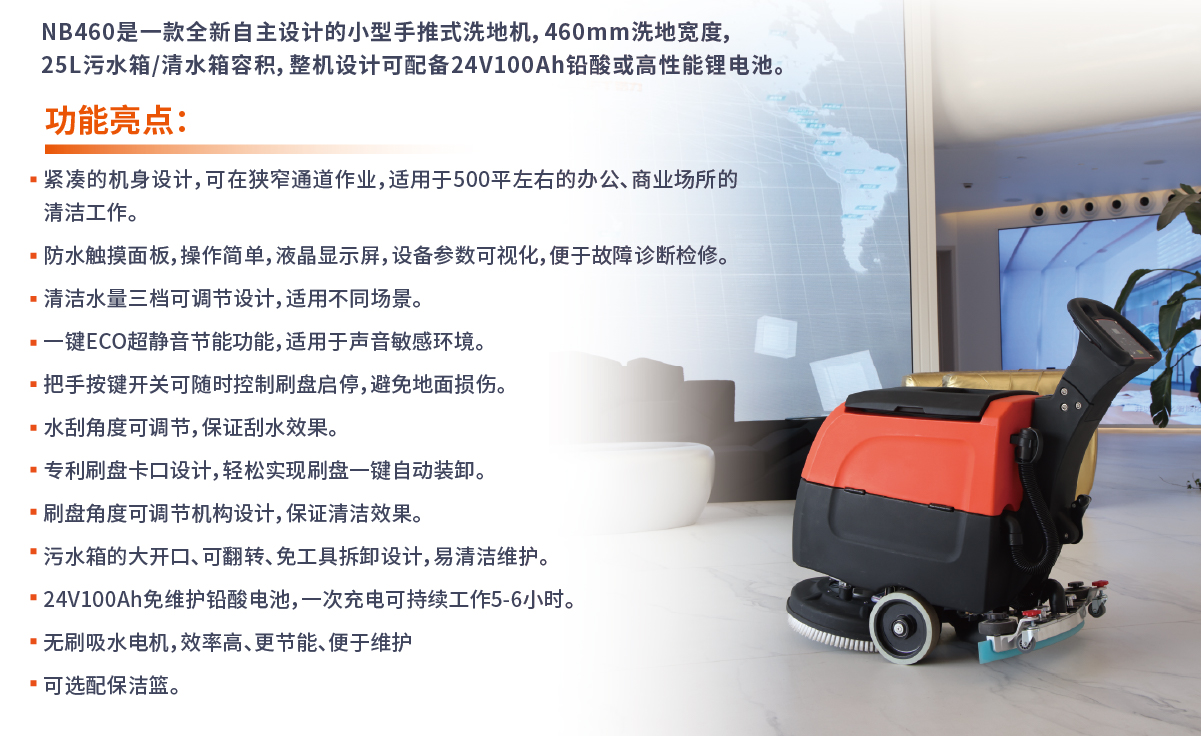 全新自主设计的小型手推式洗地机,紧凑的机身,可在狭窄通道作业