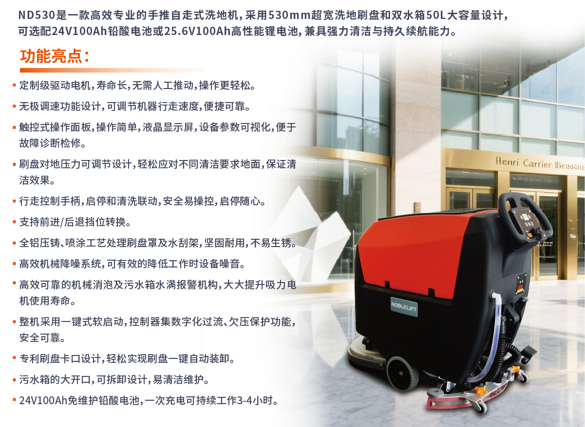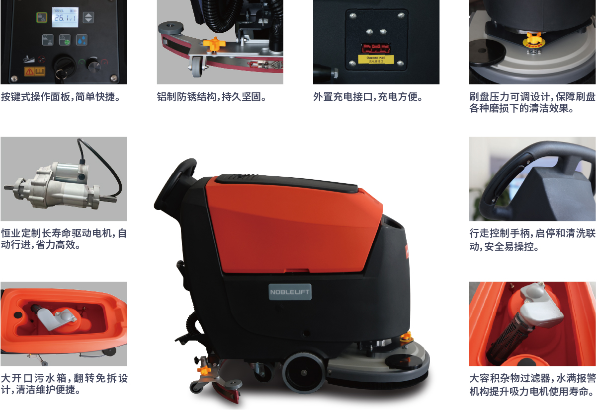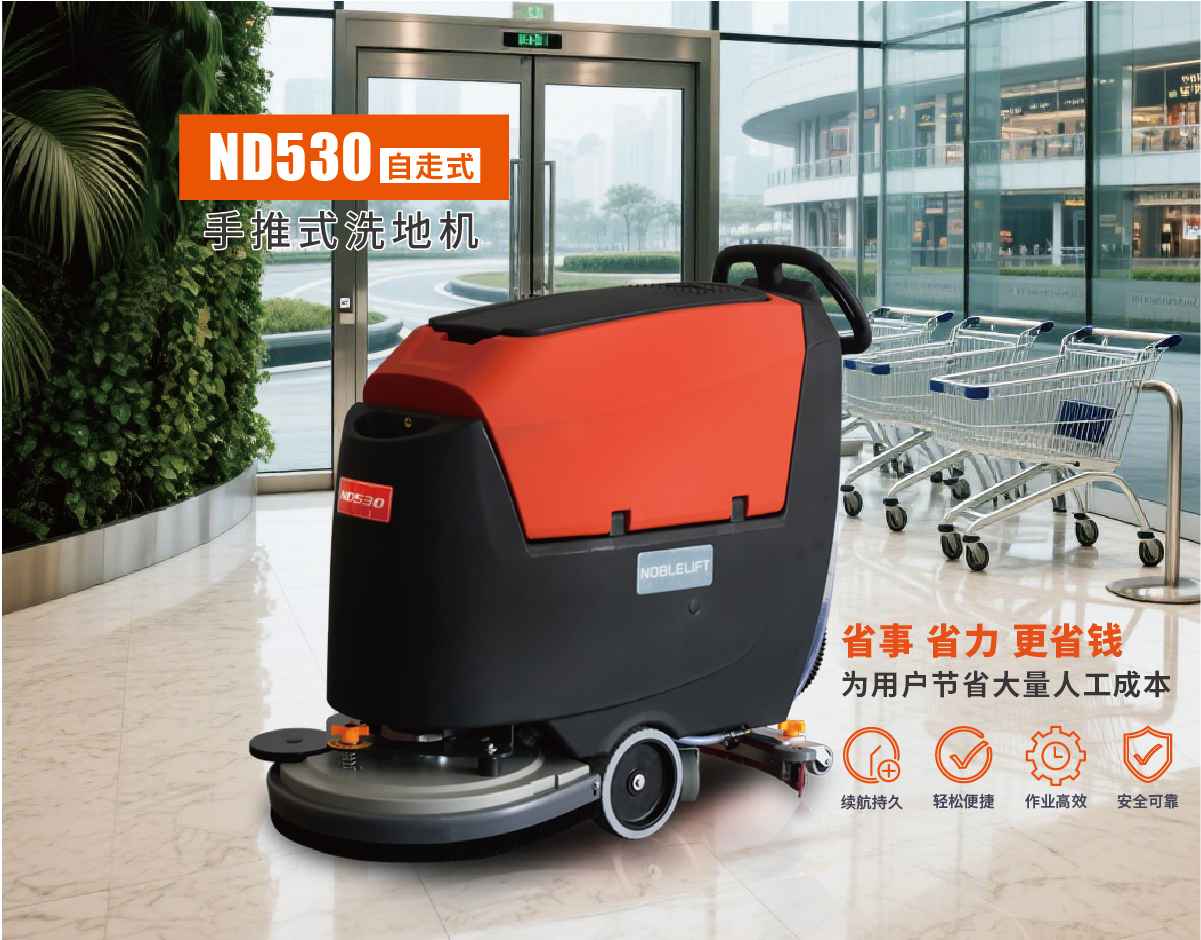 高效专业的手推自走式洗地机,无需人工推动,作业更轻松,满足小型公共场所清洁需求。